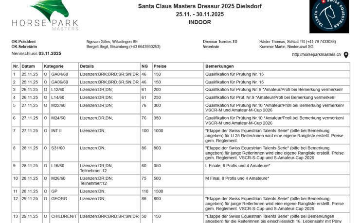 Alle Prüfungen der Horse Park Masters auf einen Blick!