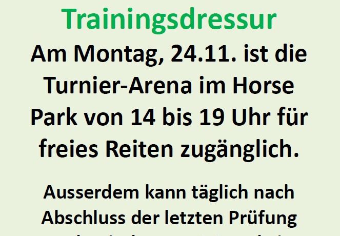 Trainingsdressur von 14:00 Uhr bis 19:00 Uhr durchgehend.