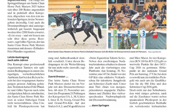 Für die Dressurwoche am Santa Claus Horse Park Masters vom 25. bis 30. November suchen…