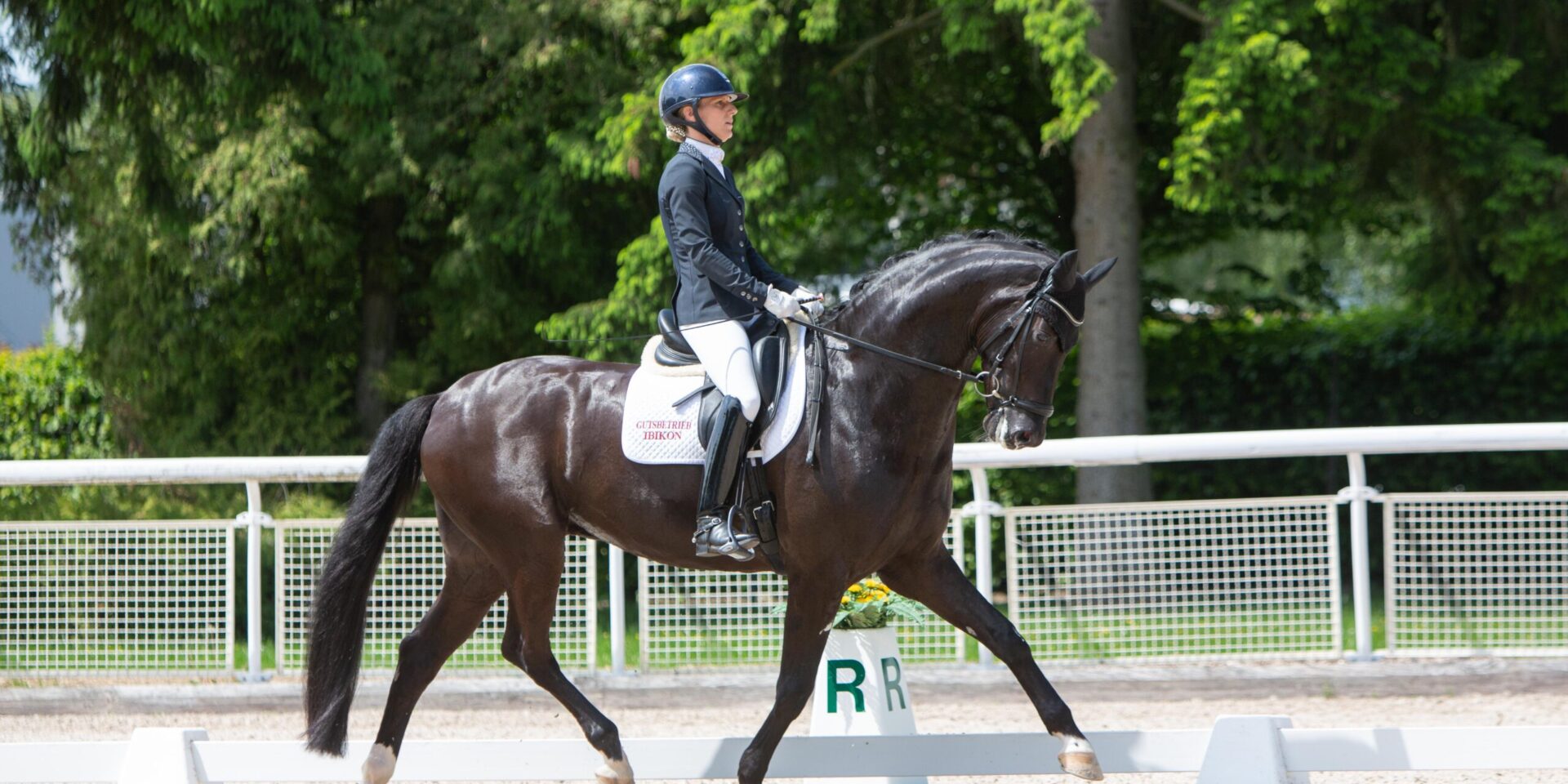Er ist erst fünf Jahre alt und seine Qualität offensichtlich: Der lackschwarze Westfale Da Vinci L gewann mit Melanie Hofmann, Willadingen, im Sattel das L12/60, den Rihani-Preis, mit 71.88 Prozent. „Seine Reiterin hat ihn super vorbereitet“ freut sich Besitzer Robert Lualdi, der stolz denn Siegerstrauss entgegennahm. Ein sehr schönes, durchwegs sicheres und harmonisches Programm gelang auch der Wetziker Reitlehrerin Käthi Ziörjen, die Ruby Blue KGW CH auf Platz 2 ritt. Der Tessiner Fabio Tino klassierte seine beiden Pferde Quantico III und Golden Sare TM auf den Rängen 3 und 4. Eine Doppelbelegung gab es auch auf den Rängen 5 und 6 durch Markus Graf, Dielsdorf, mit Bob Dylan M und dem leichtfüssigen Der feine Franz.