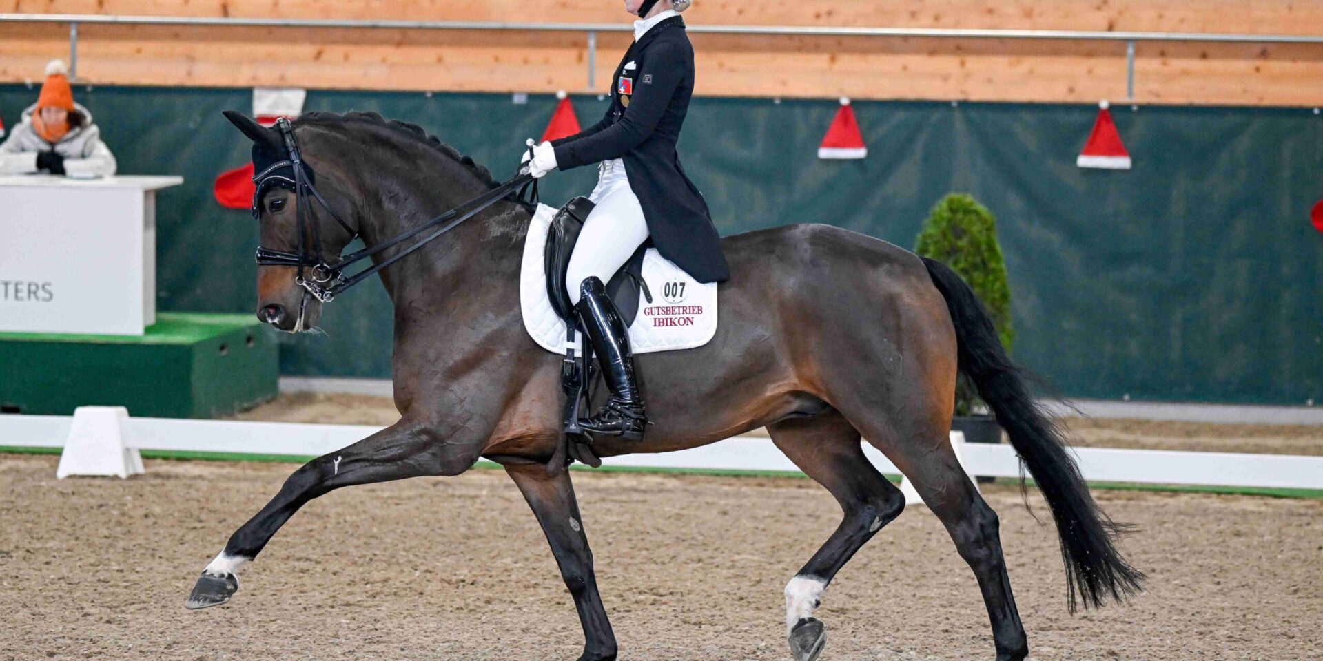 Traumhafte Piaffen und Passagen, toll gesprungene Galopp-Pirouetten und tadellose Zweier- und Einerwechsel und das alles im Rahmen einer abwechslungsreichen Choreographie mit hohem Schwierigkeitsgrad: Andrina Suter und Fibonacci III, das letzte Paar in der heutigen Grand Prix Kür, dem Preis von Herrn Robert Lualdi, Rotkreuz, überzeugte die fünf Richterinnen und Richter und holte sich mit 78,327 Prozentpunkten den Sieg. Die Reiterin sass dabei erst das achte Mal seit ihrem Oberarmbruch vor sechs Wochen wieder im Sattel. «Mehr Sorgen als mein Arm, der sich vom gestrigen Ritt rasch wieder erholte hatte, machten mir heute Morgen meine fast eingefrorenen Finger», lachte die Siegerin. «Es bedeutet mir viel, dass ich in Dielsdorf noch an den Start gehen konnte», sagt Andrina Suter und fügt an, dass dies nur möglich war dank viel Unterstützung von ihrem Team, ihrer Mutter und Gilles Ngovan, der ihre Pferd fit hielt in der Zeit in der sie nicht reiten konnte.