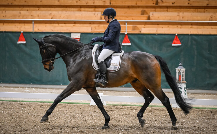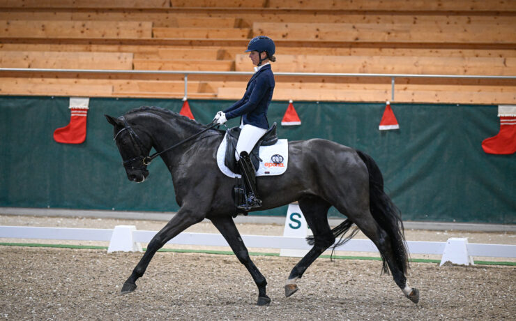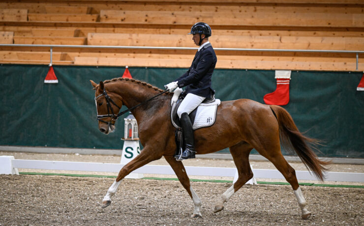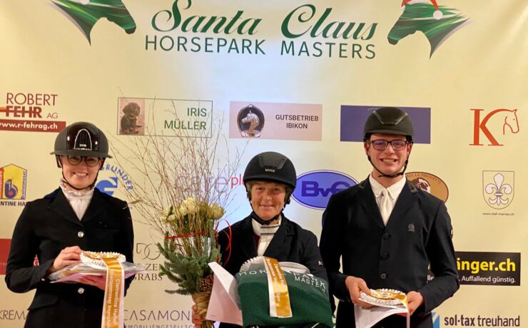 Sie war die einzige Reiterin im Preis vom Buchholz, Grüningen, dem M22/60, die von den Richterinnen Evelyn Kern, Sandra Meier und Suzanne Jucker (C), mit über 70 Prozentpunkten bewertet wurde und das gleich mit beiden Pferden. Im Sattel des 7-jährigen Oldenburges Davi G erzielte