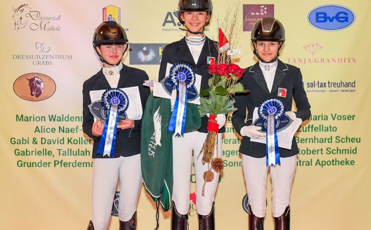 Als zweite Junioren-Prüfung im Rahmen der Swiss Equestrian Talents Serie am Santa Claus Horse Park Masters, dem Preis vom Dressurstall Maiholz, Frauenfeld, hatten die jungen Reiterinnen und Reiter ein M29 zu absolvieren. In der ersten Prüfung noch Zweite, ging nun der Sieg an Mirjam Bachmann