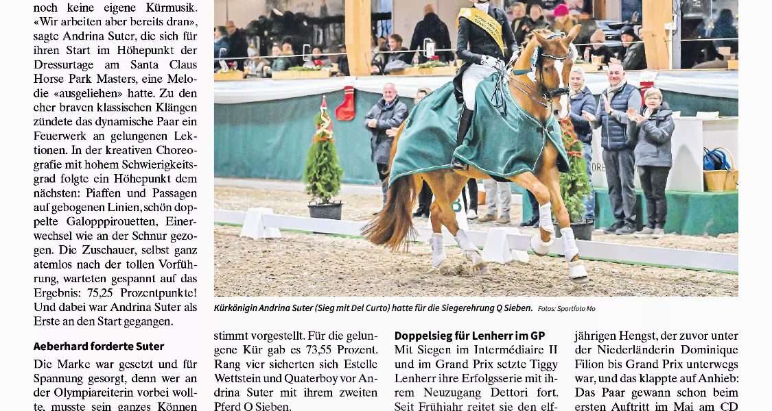 BITTE BEACHTEN: Für die R/N100- und R/N105-Prüfungen vom Sonntag, 8. Dezember, wurde ein neuer Zeitplan erstellt: Prüfung 17a 07:30 UhrPrüfung 18a anschl. Prüfung 17b ca. 11:45 UhrPrüfung 18b anschl. Prüfung 17c ca. 16:30 UhrPrüfung 18 c anschl. Startlisten unter https://info.swiss-equestrian.ch/#/startlisten/56106