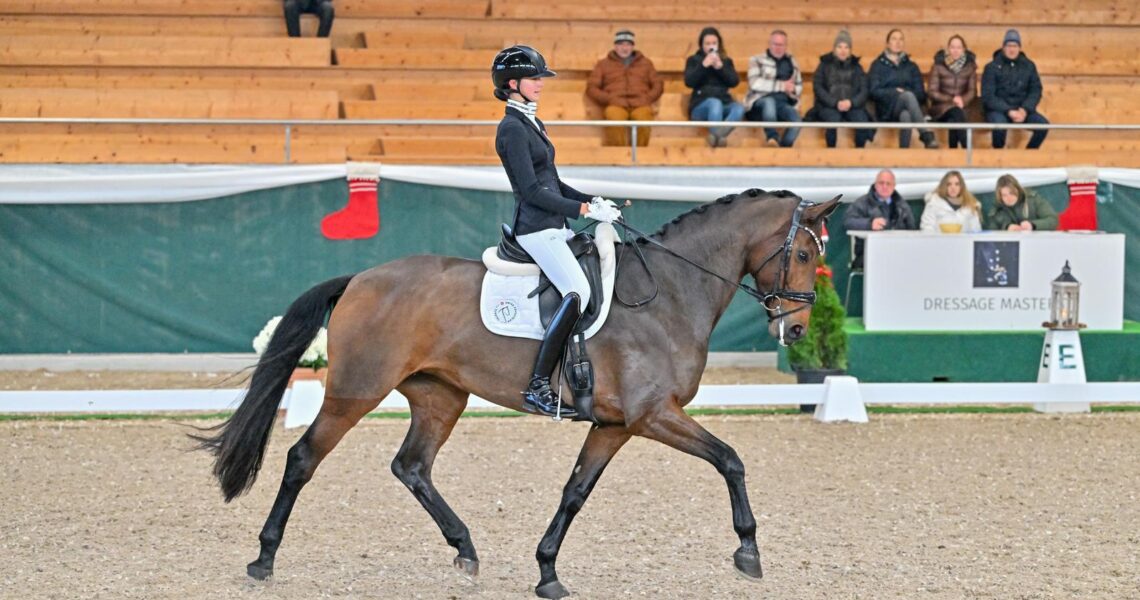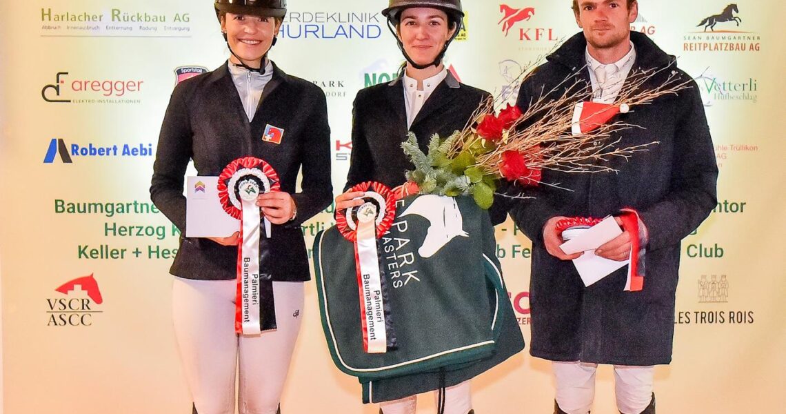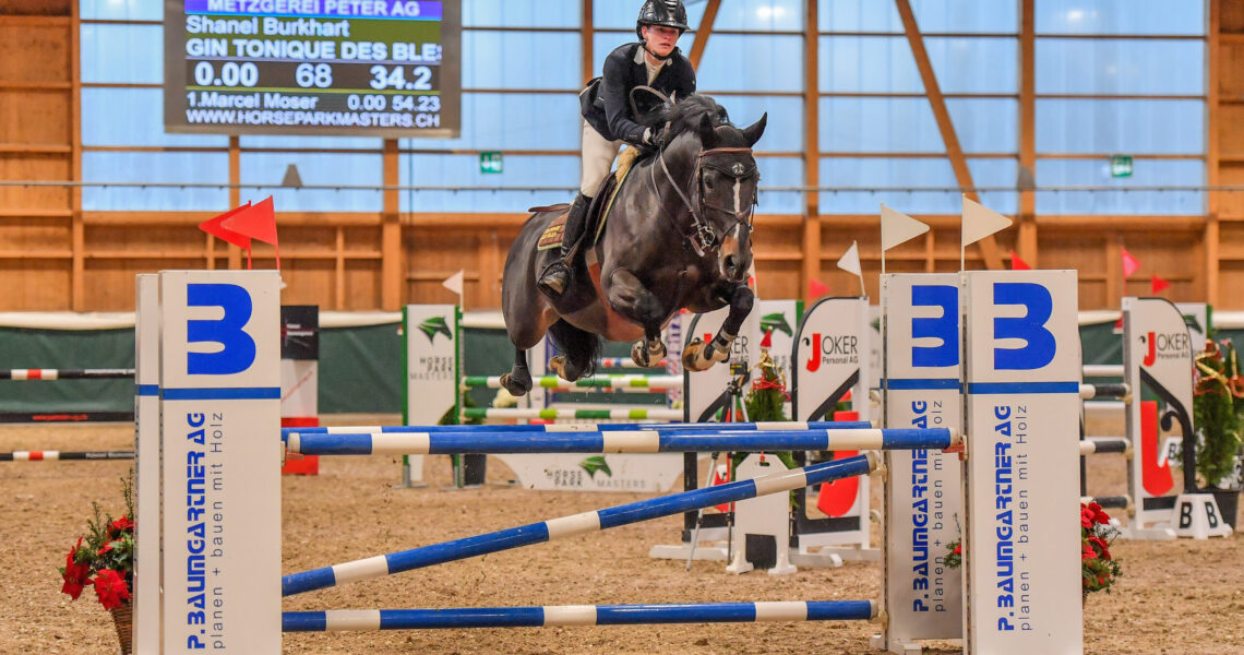 Die vierte von sechs Prüfungen der Kategorien RN110 und RN115 am ersten Tag der Springwettbewerbe am Santa Claus Horse Park Masters ist beendet. Auch in der zweiten RN110-Abteilung, dem Preis der Metzgerei Peter AG, Balterswil, nach Wertung A mit Zeitmessung, siegte eine Amazone: Shanel Burkhart