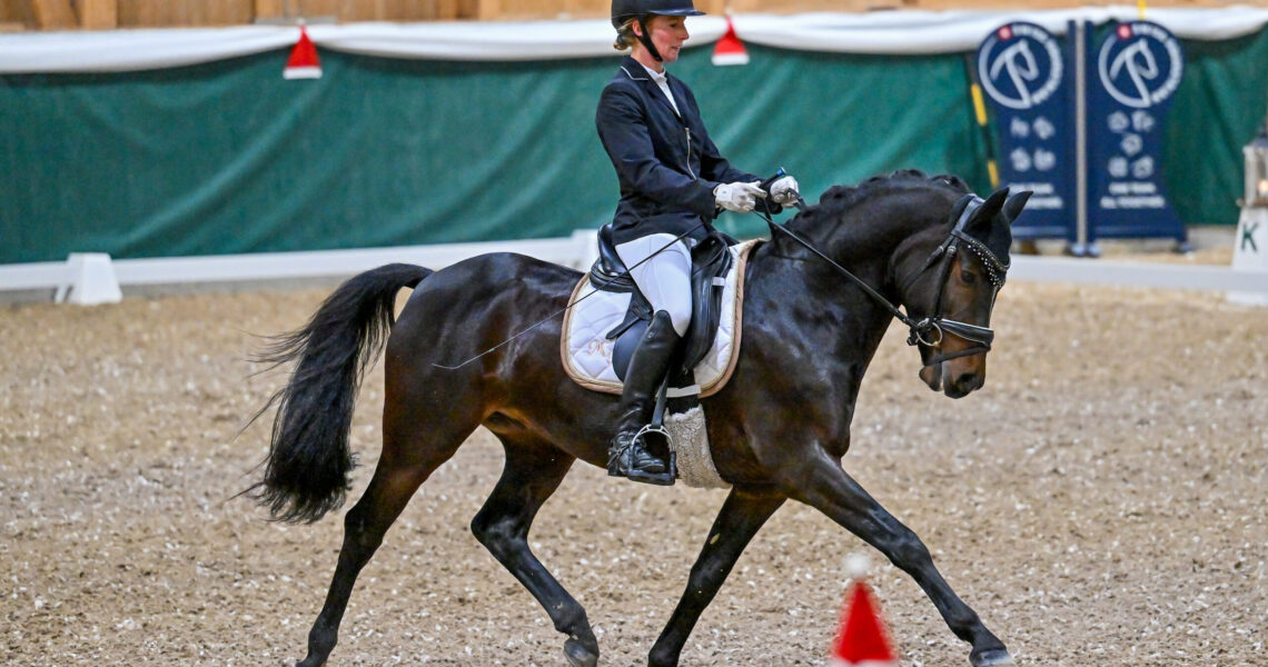 Der erste lange Turniertag am Santa Claus Horse Park Masters endete gegen 21.30 Uhr als mit Melanie Miesch, Vallon, und dem Sportpony-Hengst Deichkind SH die Sieger im zweiten GA06, dem Preis von Gaby & David Koller, Hedingen, feststanden. In der Vorprüfung noch Zweite, entschieden die