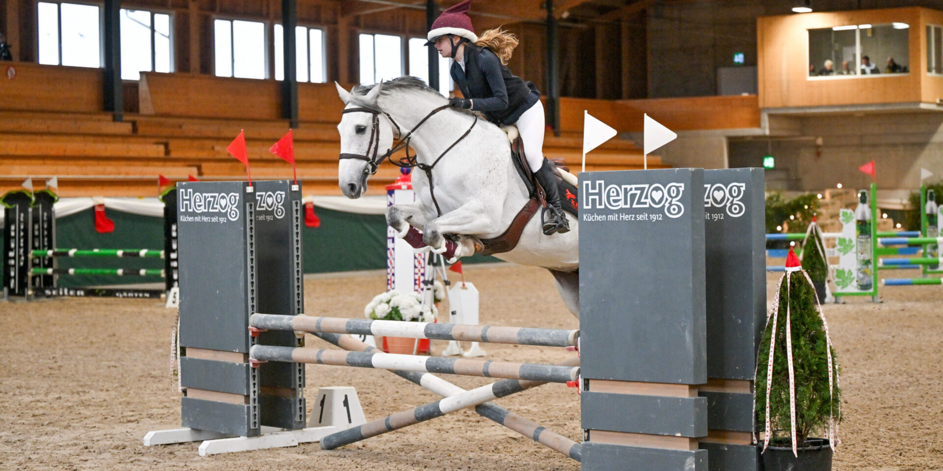 Ihre gute Form hatte Rozalia Filipiak bereits in der vorhergehenden Prüfung mit einem 5. und einem 13. Rang angedeutet – und den schönsten Helmüberzug trug sie sowieso, passend zur vorweihnachtlichen Stimmung am Santa Claus Horse Park Masters. Nun durfte sich Rozalia Filipiak in der zweiten Abteilung des Preises der KFL Sporthorses, Dielsdorf, in die Mitte des Siegerpodestes stellen. Die Reiterin aus Uitikon-Waldegg sass bei ihrem Sieg im Sattel der 9-jährigen KWPN-Schimmelstute La vie est belle VK. Der 2. Rang geht an die Dritte der Vorprüfung, Matilde Puricelli, Genestrerio, mit ihrem Pony Verywell du Boisdore vor Giulia Katia Doswald, Gockausen, mit Umea de Pleville und Emma Renggli, Zug, mit Adomo’s Glarina, und Lya Valentina Graf, Buchberg, mit dem 21-jährigen Holsteiner Unlimited III.