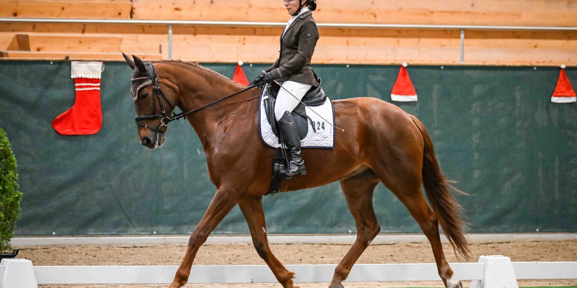 Der Preis vom KK Pferdebetrieb GmbH, Deitingen, das GA06/40, war die letzte von drei GA-Prüfungen am heutigen dritten Turniertag des Santa Claus Horse Park Masters. Die Prüfung mit 40 gemeldeten Teilnehmenden endete mit einem Sieg von Nicole Peege aus Ettenhausen. Im Sattel des achtjährigen Hannoveraners Da Capo Al Fine erzielte sie ein Score von 66.72 % – das reichte zum Sieg. Auch wenn ihr die Siegerin der Vorprüfung, Anita Leonardi aus Bévilard mit Dancira ZFK CH dicht auf den Fersen war: sie lag nur 0.36 Prozentpunkte zurück. Und mit wiederum nur einem Zehntelpunkt Rückstand Dritte wurde Kira Schmid aus Schinznach Dorf mit GB Santiago – sie war in der Vorprüfung Vierte. Diesmal ging der 4. Rang an Olivia Huber aus Galgenen mit Jacodis Maritzas Maison (65.51%) vor Franziska Siegrist aus Oftringen mit Tuana vom Loo CH, der Zweiten aus der Vorprüfung.