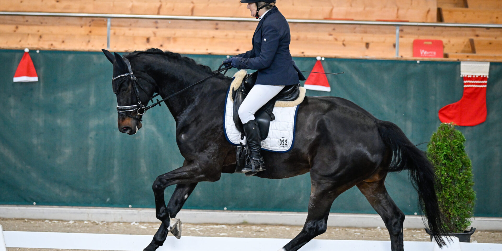 Sie gewann in dieser Woche in Dielsdorf schon ein L12 und ein L14, nun entschied Dominique Suter aus Dörflingen auch die letzte Prüfung in der ersten Turnierwoche des Santa Claus Horse Park Masters, das GA06, der Preis vom Tierkrematorium Kirchberg GmbH, Frau Brigitte Hartmann Imgrüt, Kirchberg, für sich. Im Sattel der 7-jährigen Rheinländestute Fiona LXXVI gewinnt sie mit 71,061 %, dem einzigen Total in dieser Prüfung oberhalb derr 70-%-Marke. Der zweite Rang ging an die junge Maienfelderin Nina Angelina Walser mit Robynne Grafs ehemaligem Erfolgspony Dallas IV (69,47 %) vor Caroline Holzherr aus Spreitenbach mit der 16-jährigen Schweizer Stute Jmola CH (68,788).