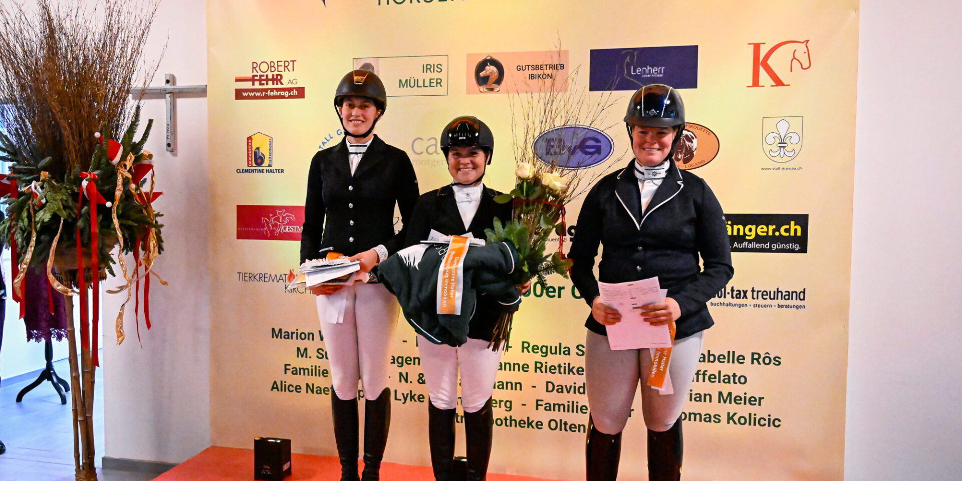 Die zweite Abteilung des GA04, der Preis von Nicole & Bruno Gassmann-Ackermann, Oberwil b.Nürensdorf, gewinnt Eliane Rüegg aus Stallikon. Sie sass dabei im Sattel der hübschen, schwarzbraunen Fürstin von Worrenberg und erhielt für ihre gute Vorführung 68,125 Prozentpunkte. Auf das Podest begleitet wurde Eliane Rüegg von Hildegard Brändle aus Thayngen, die mit dem fünfjährigen Westfalen Vote for Me ein Ergebnis von 67,656 % erzielte, und von Jrina Giesswein aus Guntmadingen, die mit dem Trakehner ETS Oliver Twist auf den 3. Rang ritt. Für die originellste Schur wurde leider keine Sonderpreis vergeben, sonst hätte ihn die viertplatzierte Emmely Fluck aus Dinhard, erhalten, die ihrem Ponyrappen Puschkin Black Sun eine Schneeflocke sowie eine Samichlausmütze ins Fell gezaubert hatte und damit perfekt das Thema der weihnachtlich geschmückten Reithalle aufgenommen hatte.