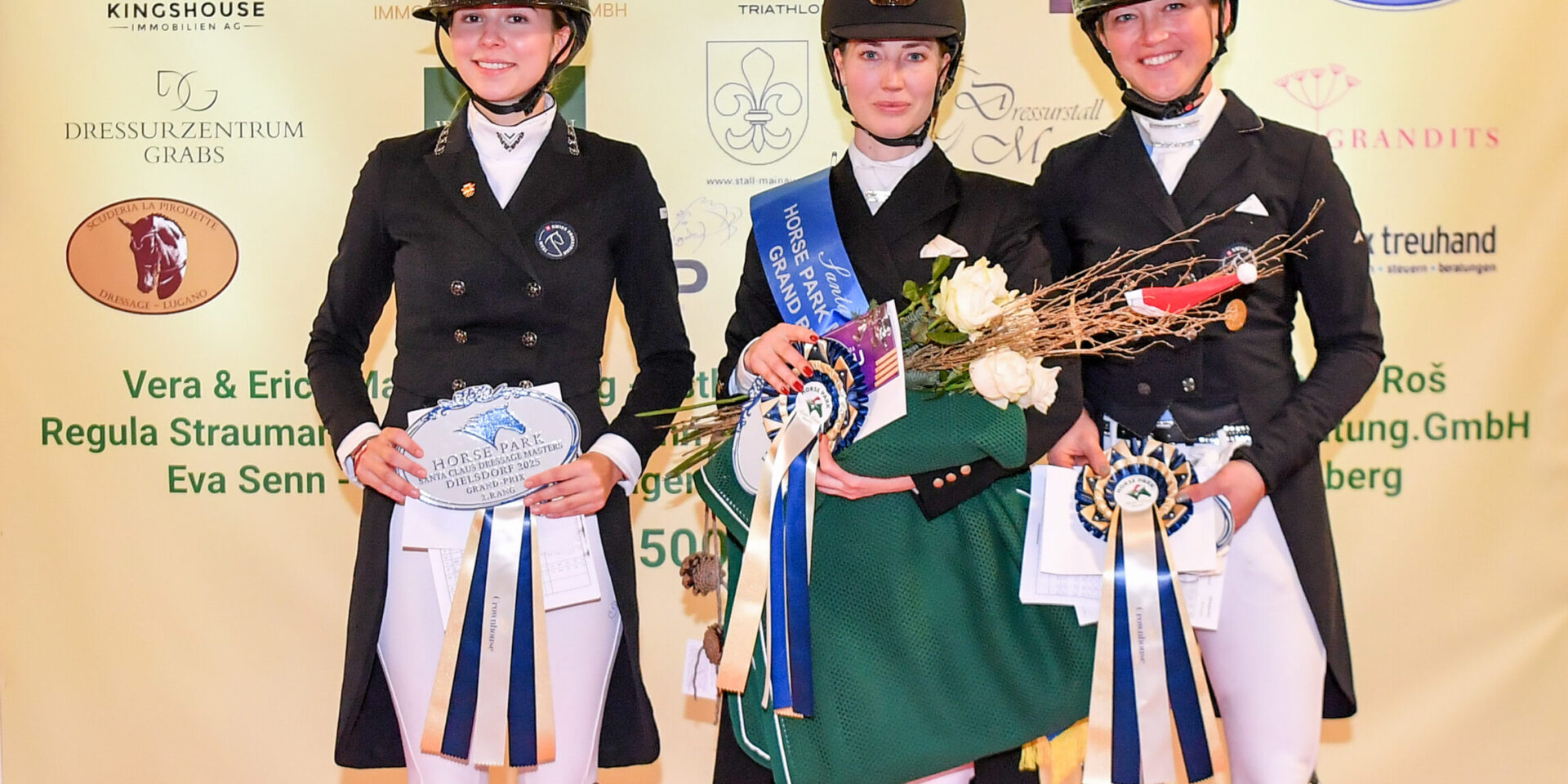 Mit seinen 11 Jahren hat Flynn FRH, der in Paris Olympiapferd für die belgische Mannschaft war, diesen Prozess weitgehend hinter sich. Er spielte seine Qualitäten in dem Grand Prix voll aus und seine neue Reiterin, die 21-jährige Tallulah Lynn Nater, führte ihn nahezu fehlerfrei durch die Lektionen. Zeitweise wurde der ausdrucksstarke Hengst etwas eng im Hals und hätte hier und da etwas mehr Unterstützung gebraucht, doch die insgesamt sehr ansprechende Vorführung wurde mit 69.46% und Rang 2 belohnt. Mit 69.28 % und damit ihrem besten Grand-Prix-Ergebnis in dieser Saison belegten Caroline Häcki und Diabolina, die ihre natürliche Veranlagung für Piaffe und Passage gut zur Geltung brachte, den 3. Rang vor Andrina Suter mit Q Sieben (68,88%) und Tiggy Lenherr mit Gentleman XIV (68,82%).