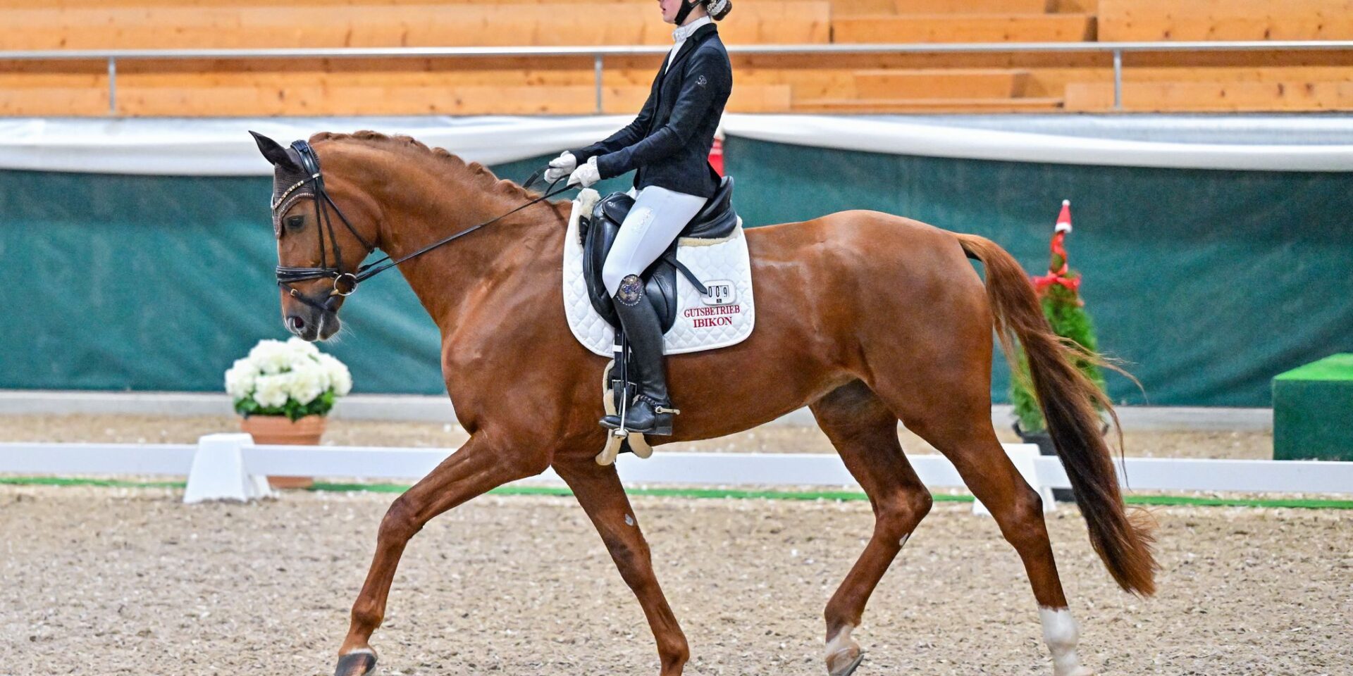 Der Apfel fällt bekanntlich nicht weit vom Stamm und so ist das auch in der Familie Hofmann/Ngovan: Ihr Vater Gilles Ngovan ist Co-Präsident des Santa Claus Horse Park Masters, ihr Mutter Melanie Hofmann hat die beide M-Prüfungen gewonnen, ihre Schwester Meilin Ngovan den St. Georg und das S32 – und nun siegt auch die 14-jährige Leana Hofmann: Im Sattel des elfjährigen Depeche Mode tanzte sie im Preis vom Dressurstall Maiholz, Frauenfeld, einer Junioren-FEI-Prüfung der Kategorie M28 mit 68,018% zum besten Ergebnis der Prüfung. Der 2. Rang ging an Mirjam Bachmann aus Stallikon mit dem Oldenburger Top Level (67,928%) vor Liah Hefti, San Antonino, mit Rock Emotion (67,48%), Maya Hildebrant, Banco, mit Jackson D&E (66,802%), Sina Willener, Uettligen, mit Guapo y Jailoso vd Halderhoeve (65,856%) und Emily Weseloh, Auslikon, mit Wincento (65,541%).