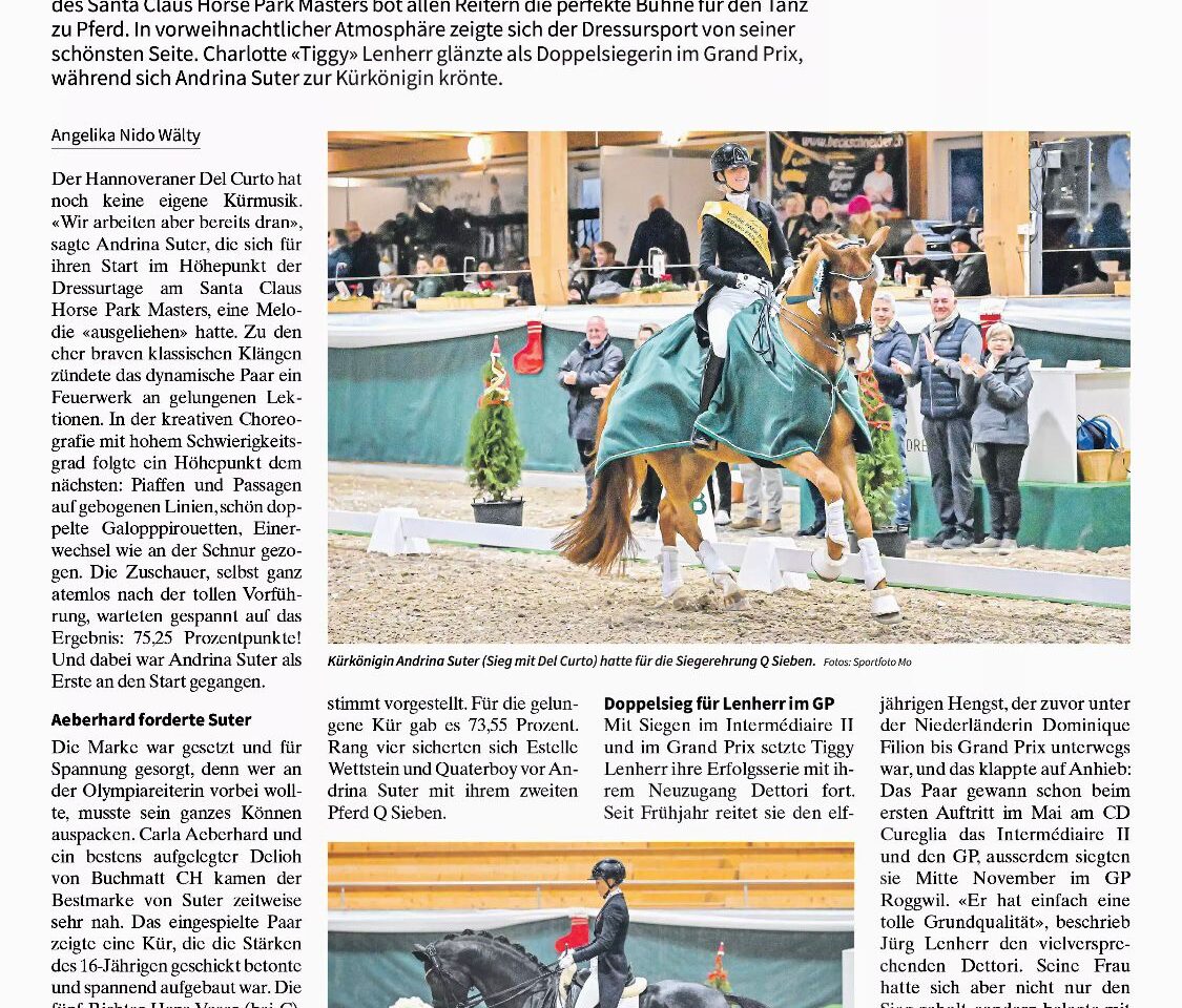 Bevor es heute Mittwoch am Santa Claus Horse Park Masters weitergeht mit 4 Springprüfungen der Kategorien R/N120 und R/N125 erlauben wir uns noch einmal einen Blick auf das Dressurfest der vergangenen Woche – nachzulesen in unserem Medienpartner PferdeWoche.