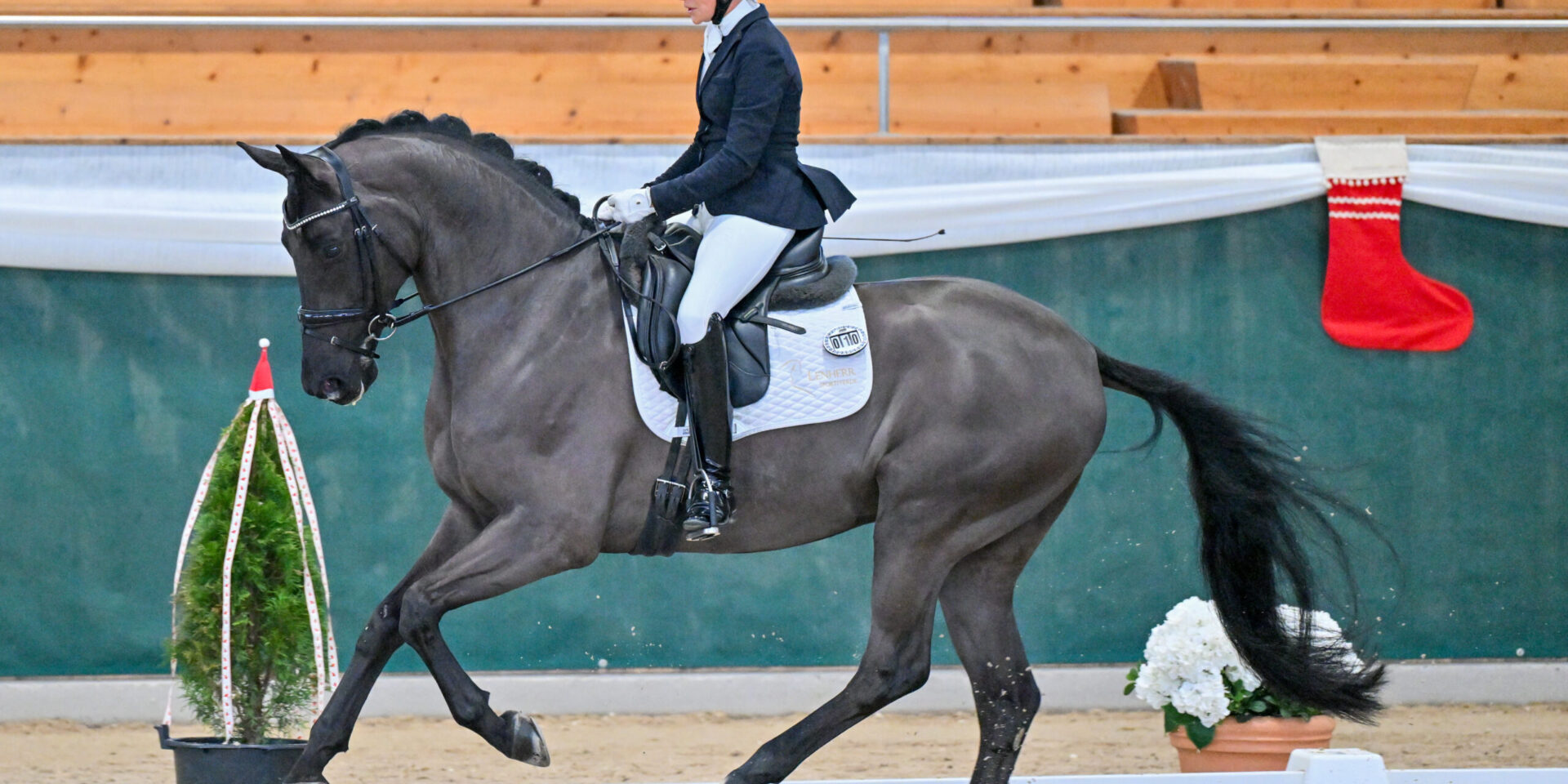 Auch auf Stufe M hatten sich die 12 besten Reiterinnen und Reiter aus dem M22 und dem M24 vom Donnerstag für einen Final qualifiziert, ein M26, dem Preis vom Ausbildungs- & Pensionsstall BVG, Grüningen und Frau Esther Tuor, Männedorf. Und wie schon zuvor im L-Final zeigten sich einige Pferde etwas knackiger als in den Vortagen, sie konnten jedoch alle ihr Können weitgehend abrufen. Die Siegerin Charlotte «Tiggy» Lenherr vermochte sich sogar noch zu steigern: mit Michèle Schildknechts Nashville war sie im M22 Neunte gewesen, das M24 hatte sie gewonnen und auch im Final führte kein Weg an ihr vorbei. Sie konnte dem erst 7-jährigen KWPN-Wallach mit ihrer Erfahrung und feinen, präzisen Reitweise in der Prüfung viel Sicherheit geben, was Nashville mit einer tadellosen, in allen Lektionen sicheren Leistung quittierte. Der Lohn waren 71,707 Prozentpunkte und drei Richterinnen und Richter, die sie folgerichtig auf Platz 1 sahen. Der 2. Rang ging an die Führende der Zwischenwertung, Andrina Suter, mit Doris Nachtigals talentierter 8-jähriger Westfalenstute Angelina Jolie (70,65%) vor Markus Graf mit Bernstein (69,634%), Ronald Scholten, Hirzel, mit Quantico III (68,537%) und Petra van Esch aus Holland mit Linedancer (68,252%)