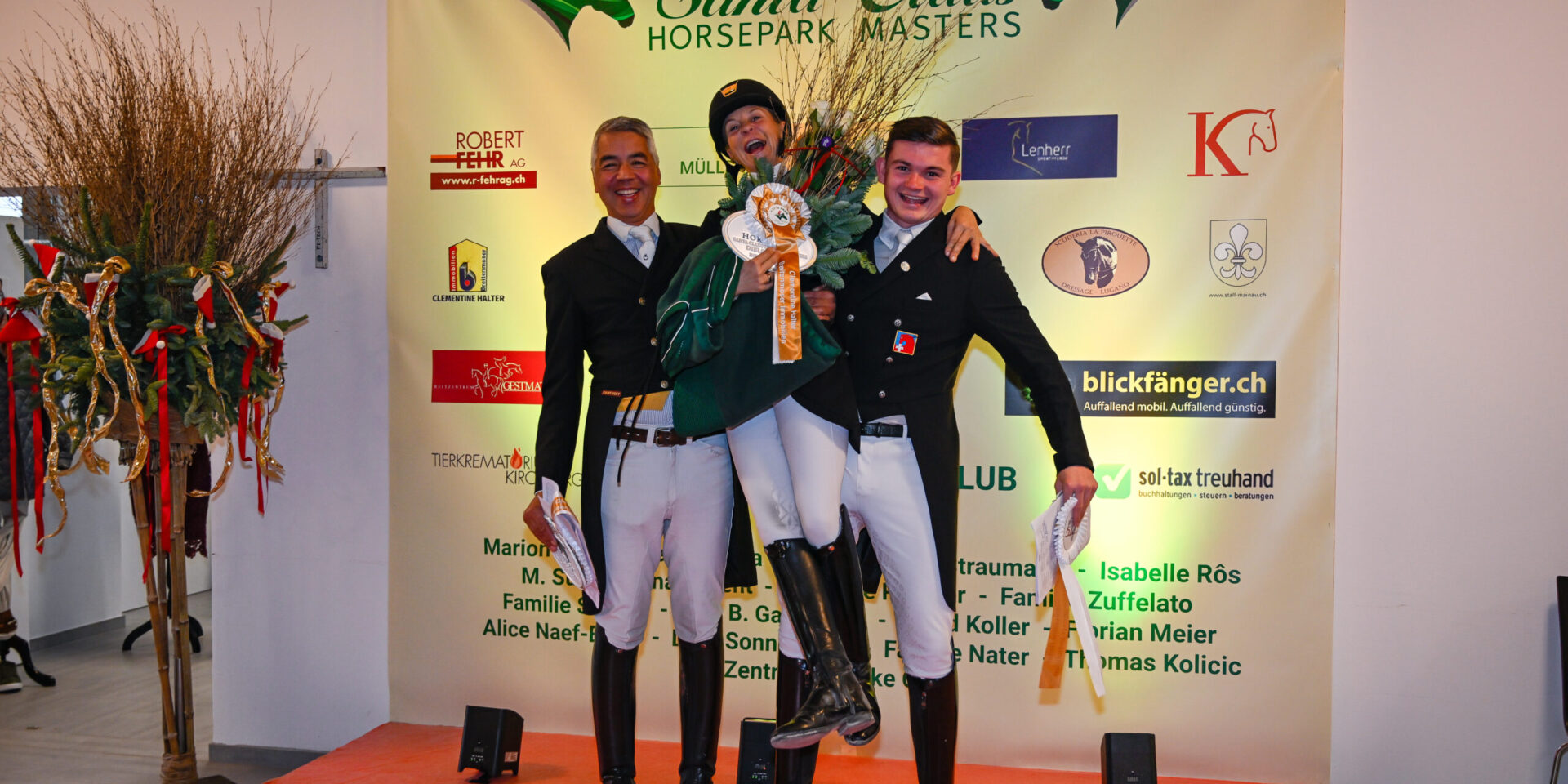 Für die Teilnehmenden im Inter I, dem Lenny Hill Preis, gab es heute kein Vorbeikommen an Charlotte „Tiggy“ Lenherr und dem 8-jährigen Rheinländer Gentleman XIV, der im Besitz von Ruth Kranz ist: die beiden tanzten harmonisch und sehr taktsicher zu einem Score von 73,08 % und zum unangefochtenen Sieg in dieser Prüfung. Der 2. Rang ging an Gilles Ngovan, den Sportchef des Santa Claus Horse Park Masters, mit Elisabeth Hofers 12-jährigem Hannoveraner Dormello (71,53 %) vor Carl-Lennart Korsch mit de 10-jährigen Fantasy VI (69,34 %). Ebenfalls noch klassiert war Andrina Suter mit Robert Lualdis Hengst Movie Star L (68,71 %)